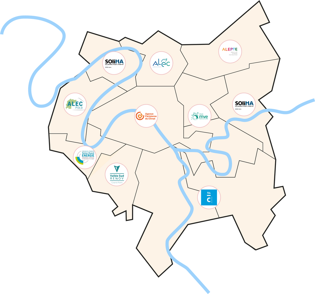 Nous réunissons les 8 agences locales qui apportent informations, conseils et accompagnement à la rénovation de l’habitat sur le territoire de la Métropole du Grand Paris.