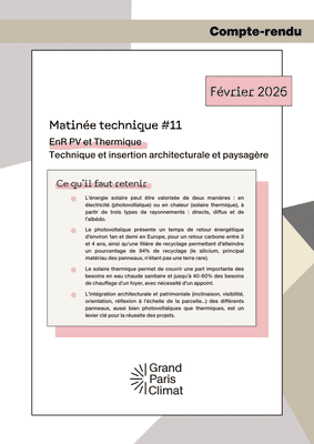 Cette 11ème Matinée Technique de Grand Paris Climat était consacrée au solaire photovoltaïque et au solaire thermique.
